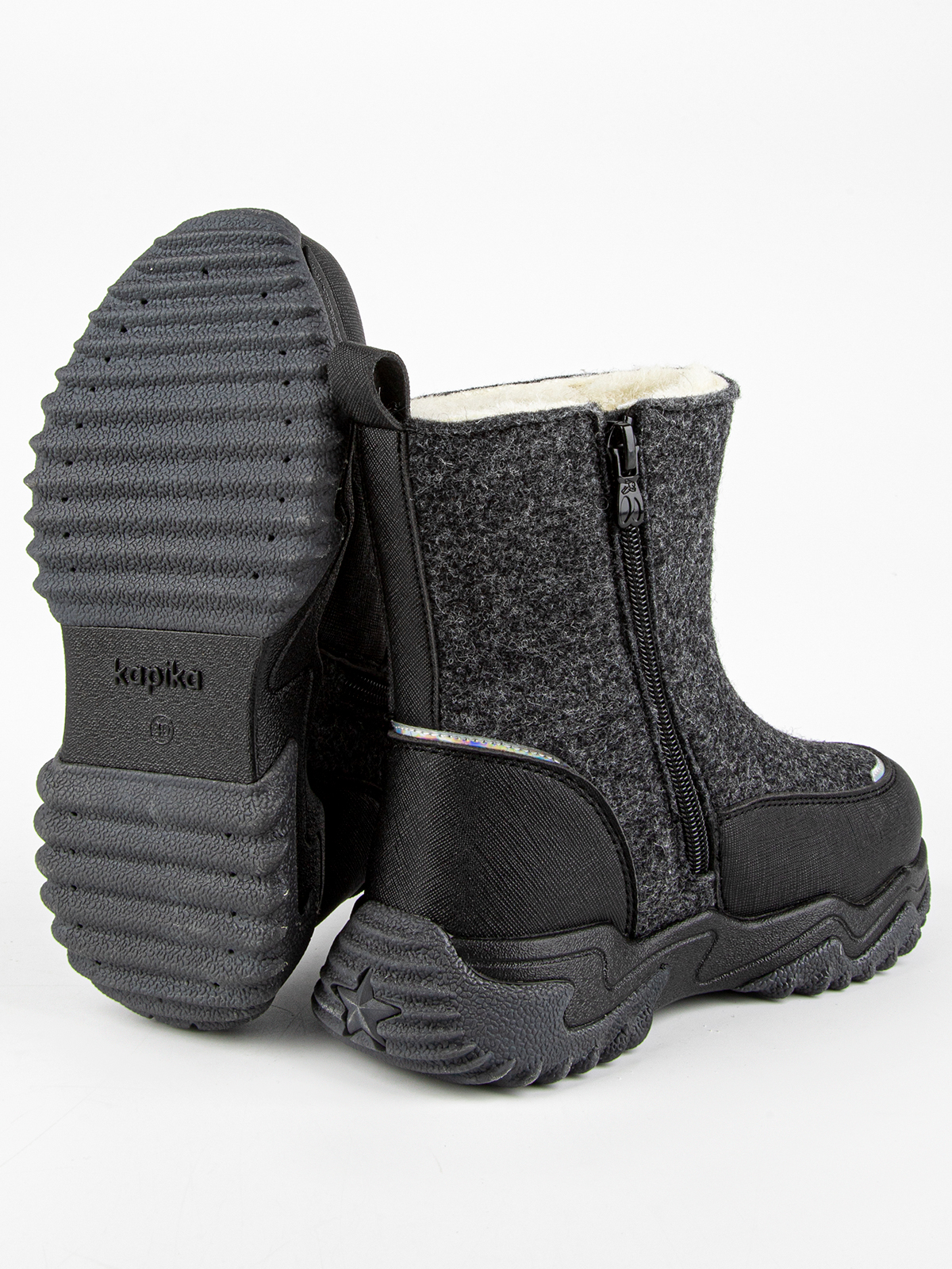 Теплые сапоги из войлока – надежная защита от холода даже при сильных морозах. Подкладка и стелька выполнены из 80% шерстяного меха. Толстая подошва, состоящая из полимерного материала, обеспечивает легкость и, при этом, предотвращает скольжение.