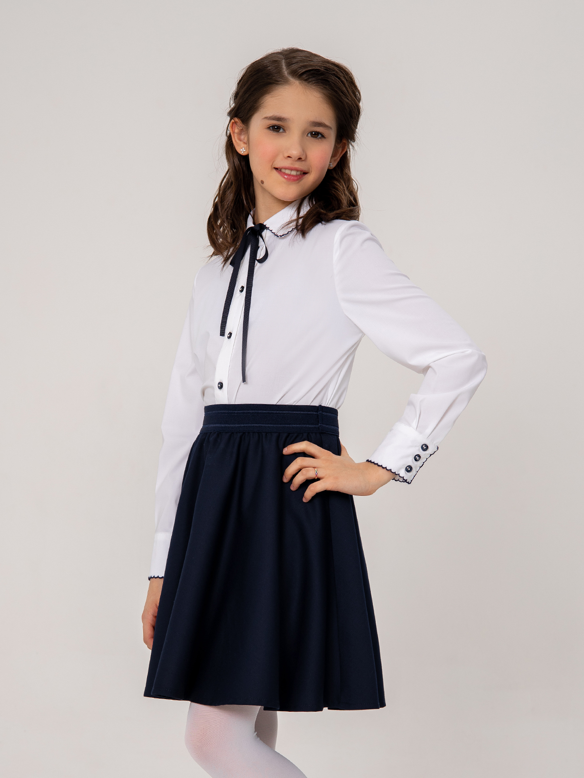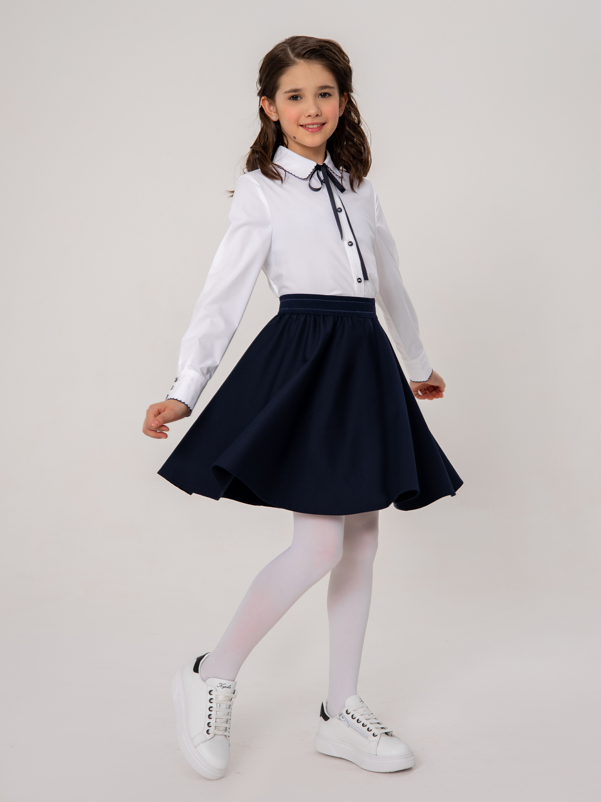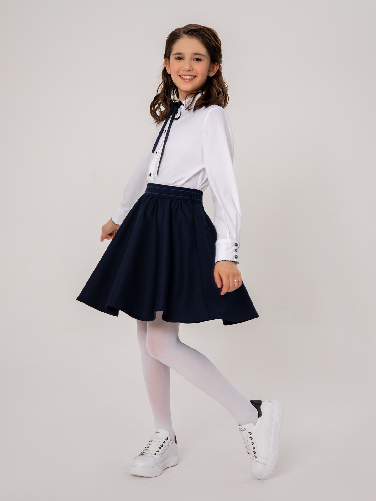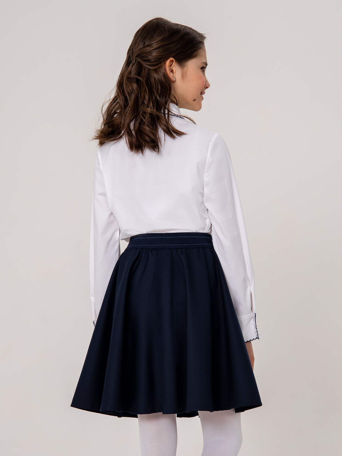 Темно-синяя школьная юбка выполнена из высококачественной костюмной поливискозы с высокой воздухопроницаемостью. Форма полусолнце. Ткань плотная, приятная на ощупь, не скатывается, сильно не мнется, износостойкая, не теряет форму и цвет после стирки. Юбка для школы легко надевается за счет эластичной резинки на поясе.